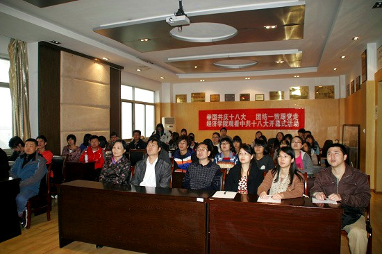 十八大会拉帷幕,党的事业谱新篇。11月8日上午9点,中国共产党第十八次全国代表大会在人民大会堂拉开盛大帷幕,成人直播 师生代表在综合楼八楼会议室举办了“举国同庆十八大,团结一致跟党走”集体观看十八大开幕式直播活动。党总支副书记吴太福、学生会分团委书记郭勇等老师一并观看了大会直播盛况。