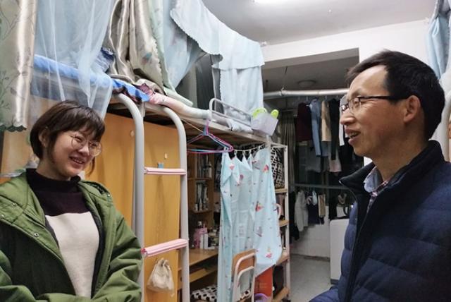 夜晚的寒风并没有阻挡老师们的步伐,晚上七点半,老师们准时出现在蛟桥22栋的大厅。在了解了各班同学居住的寝室后,各班班主任辅导员等人立即前往各班寝室,逐个敲门,对学生返校情况进行核实,并积极询问学生寒假期间的活动,对积极参与社会实践和志愿服务的同学给予表扬。当得知部分同学在学习及生活中遇到了问题,老师们积极提供帮助,并收集棘手的问题或困难向以便集中反馈。在检查完大二大三寝室后,老师们便启程前往麦庐看望大一学生。在麦北4栋,迎接老师们的是一张张热情的笑脸。步入大学校门半年的他们,转眼间就进入到大学的第二个学期。今年春季多雨潮湿,老师们殷切的叮嘱同学们注意防寒保暖,对沉迷网络游戏的同学进行劝诫,并仔细询问同学们新学期计划,鼓励大家珍惜大学时光学习更多知识技能。