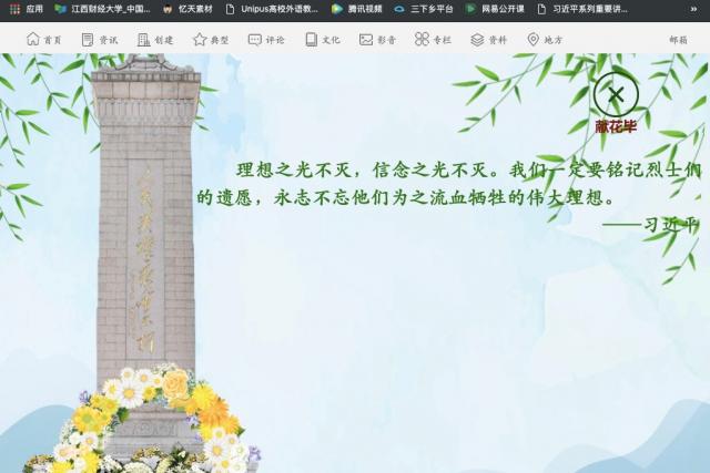 清明今又来,英雄花盛开。为了铭记为民族独立、人民解放和国家富强、人民幸福作出巨大贡献和牺牲的英雄烈士,树立崇尚英雄、缅怀先烈的良好风尚,营造传承英烈精神、奋进新时代的良好氛围,成人直播 开展线上祭先烈活动,同学们纷纷用敬仰的情怀,为英雄烈士点亮一盏灯、献上一束花、躹下一个躬。