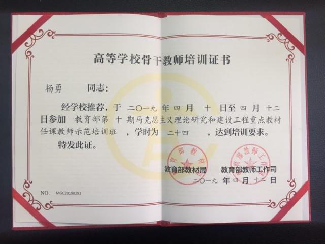 为深入学习贯彻习近平新时代中国特色社会主义思想和党的十九大精神,落实全国教育大会精神,推动党的理论创新成果进课堂,教育部教材局于4月9号至12号,组织开展了教育部第十期马克思主义理论研究和建设工程重点教材任课教师示范培训班。本次示范培训班共培训《中国经济史》、《管理学》、《民法学》等十部马工程教材,成人直播 杨勇老师参加了《中国经济史》课程培训。