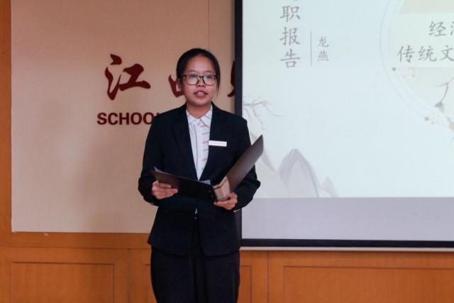 活动伊始,万婧怡老师上台致开幕词,首先她对各位老师和同学的到来表示欢迎,对学院分团委学生会各部门一年来的努力付出表示感谢。她说道:“本次评比既是对各部门的工作总结,也是对各部门工作的表彰与肯定,希望分团委学生会各部门不断加强自身建设、牢记使命、严格自律,进一步发挥带头作用,为学院学生工作再上新台阶建言献策。”