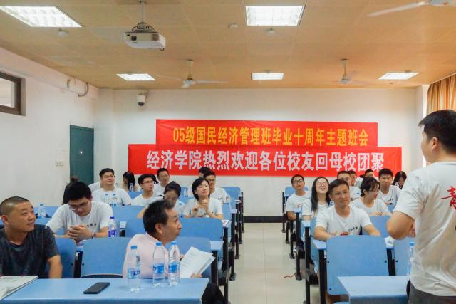 适逢祖国七十周年华诞与05级国民经济管理班(以下简称“国管班”)毕业10周年,10月3日下午,05级国管班于蛟桥园第五教学楼开展毕业十周年主题班会,成人直播 办公室主任郭勇、05级国管班班主任吴太福参与本次班会。