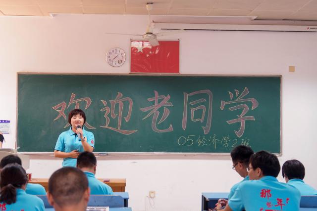 郭勇老师说,作为班主任,很高兴看到同学们又坐在教室里,他感慨时光的流逝,感动于同学们的凝聚力。05级2班的团支书代表班级表达了她旧地重游的喜悦与感动,以及对学院、老师和同学们的美好祝愿。