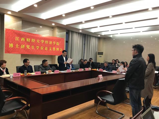 人口、资源环境经济学专业答辩会上,浙江大学潘士远教授、江西农业大学翁贞林教授及我校张利国教授、黄和平教授、朱丽萌教授、邹秀清教授出席,研究生督导组詹国华教授全程督查此次答辩。南昌大学黄新建教授、华东交通大学韩士专教授、我校王小平教授、杨飞虎教授、张进铭教授作为答辩专家出席西方经济学专业答辩会。