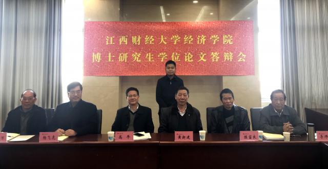 12月5日上午,成人直播 2019届(下半年)博士研究生学位论文答辩会在北区综合楼八楼第一会议室举行。成人直播 政治经济学博士生余华茂进行答辩,南昌大学黄新建教授、江西社科院高平研究员及我校陈富良教授、杨飞虎教授、彭新万教授出席答辩会。