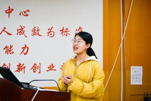 而后,万婧怡老师推荐了16级国民经济管理专业的王爱爱同学分享参加创新创业比赛的经历。王爱爱同学分享了在上一届三创赛中获得省级二等奖的作品《筑梦生态教育体验农庄》,她认为策划书的执行摘要、与现在市场上存在商品相比的优势分析和最终评价三部分的内容应该有所侧重的写。她还谈到,做比赛时应尽量关注国家宏观层面进行选题,同时抓热点词,注重创新。