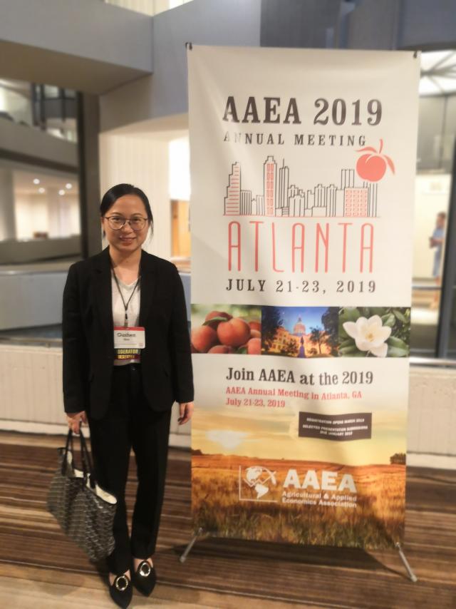 7月21日至25日,成人直播 周谷珍老师应邀参加在美国亚特兰大举行的2019年美国农业经济学和应用经济学协会年会(Agricultural & Applied Economics Association Annual Meeting, AAEA 2019),并在会议上做了论文汇报。