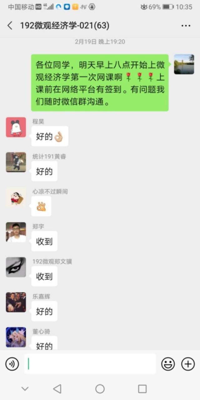但是,这种线上教学方式也存在着一些问题,其中比较突出的是对于学生的监督问题。由于没法看到学生们在家里上课的情况,监督是个难题,每次签到总有个别同学没签到,或者在规定时间内不签到要求老师放宽签到时间,同时,有的学生可能存在“仅签到,而不学”的情况。另外,有个别同学家住农村或者边远山区,有时候网络不稳定,导致签到不及时或者作业提交不上。针对这些情况,我们课程组老师之间也在加强沟通和交流,思考能够改善这个问题的方法或措施,如在微信群催同学签到,让班干部或者关系好的同学相互提醒签到等等,后续可能还会做一些新的探索。为家住农村或者边远山区的学生延长签到时间和提交作业的时间。