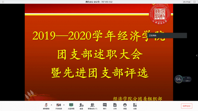 本次团支部评选活动采用线上会议的方式进行,工作人员在活动开始前提前进入会议,确认参与人员到场情况。活动开始,主持人介绍评分规则,分数由两部分组成,教师评分占总分数的七成,大众评分占总分数的三成,分别从语言表达和述职内容两个方面进行线上问卷打分。在展示环节中,各团支部代表总结一年的团建设工作进行汇报,并后对未来的团支部工作进行了规划。各团支部根据自身的特点开展了不同的团组织建设特色项目,有操场上的丰富游戏,有课余时间的志愿服务,有上课时的认真勤学……多样的风格和丰富的照片表现出各个团支部独特风貌。同时,各支部的汇报更是展现了成人直播 团支部在过去一年里喜人的工作效果,开展有序,勇于创新,通过丰富的素质拓展活动增强团的凝聚力。展示完毕,工作人员收集各评委的评分问卷,在统计分数过后评选出“优秀团支部”和“活跃团支部”。