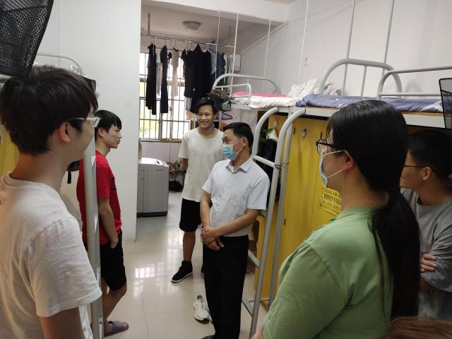 为充分掌握返校学生学习生活情况,进一步做好疫情防控工作,5月20日,成人直播 党委书记邹春发、党委副书记李大晖,全体学工老师来到蛟桥园学生寝室22栋,走访返校学生,听取学生在返校后遇到的困难与需求。