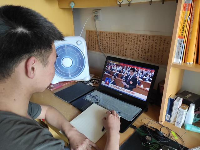 5月28日15时,十三届全国人民代表大会第三次会议在人民大会堂闭幕。因疫情正处于防控新阶段,应尽量减少聚集活动,成人直播 本科生党支部组织学生党员线上观看会议直播。