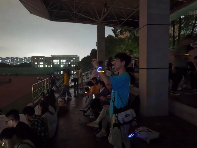 活动开始前一小时,工作人员在麦庐二食堂门口摆点宣传,吸引不少同学围观询问。虽然下着雨,但同学们的热情并未因此减少半分。音乐节正式拉开帷幕后,一首首优美动听、扣人心弦的歌曲随着慢慢降临的夜幕徐徐铺展开来,《花海》、《慢慢喜欢你》等脍炙人口的歌曲令人沉醉其中、浮想联翩。优美动听的歌声、精心布置的场所和颜色各异的荧光棒将活动气氛推向高潮,观众用热烈的掌声及挥舞的荧光棒传达着对歌手以及对草地音乐节的赞美和肯定。活动的最后,不少观众席的同学自告奋勇上台演唱,为本次草地音乐节画上完美句号。