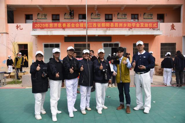 2020年10月3-5日,曹钰莹参与鄱阳县昌洲乡助学金颁发仪式时,与政府宣传工作组合影