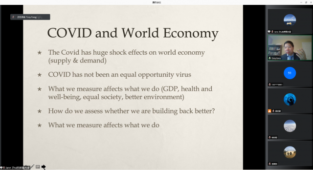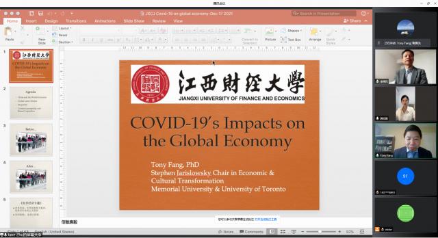 12月17日中午,加拿大纽芬兰纪念大学方涛教授应邀请为研究生做题为《新冠疫情与世界经济》的线上专题讲座。讲座由学院青年教师夏经霖主持,外事副院长李国民、外事助理卢阳博士等老师,以及不少经济学专业的博士、硕士、本科生参加了讲座。