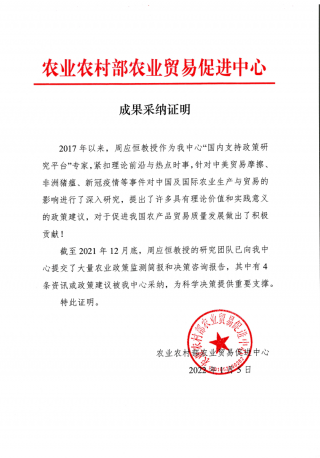 周应恒教授现任成人直播 中国农业农村现代化研究院院长,兼任中国农业经济学会副会长、中国外国农业经济研究会副会长、中央农办农业农村部乡村振兴咨询专家委员会委员、农业农村部全球主要农业文化遗产(GIAHS)专家委员等。长期从事农业经济与管理、产业经济、国际经济与贸易专业的教学与科研工作,承接国家社会科学重大课题等多项国家级与省部级课题,其中多项重要成果和观点被农业农村部采纳,为我国新时期“三农”改革与发展作出突出贡献。