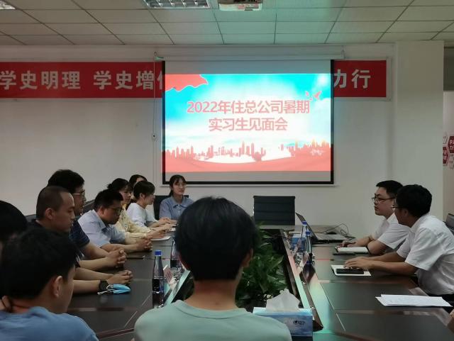 6月30日,暑期专业实训见面会在住总运营有限公司第一会议室举行。成人直播 杨飞虎副院长、余炳文副教授、李冀恺博士和8名实习学生参加会议;住总运营有限公司董事长张旭文、财务总监谢欢、办公室主任谭建军以及副主任姜睿出席会议。会议由住总运营有限公司董事长张旭文主持。
