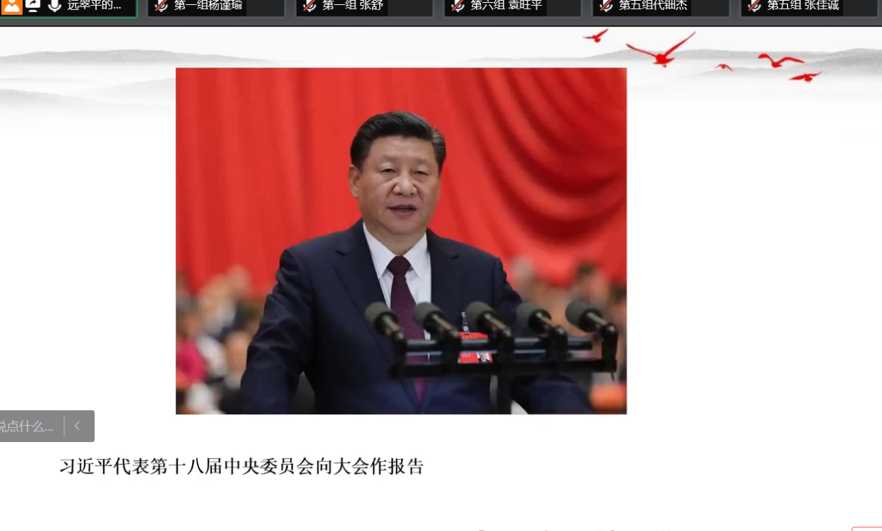 远翠平老师分别介绍了新民主主义革命、社会主义革命和建设时期、改革开放与中国特色社会主义新时代四个时期的中共代表大会的开会时间、地点和每次会议传达的主要思想,让我们对中国共产党的整个发展历程做了基本的了解。