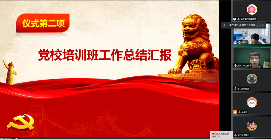 在结业典礼上,班长曾药坤对全期党课及其考核工作进行了全面总结。党校学员赵智伟作为优秀学员代表发言,发出“全面跟党走”的号召。