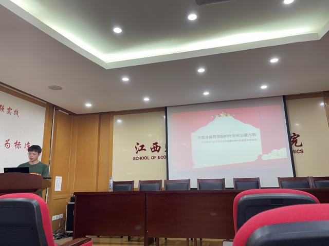 随后,一支部党员同志陈义凯,在认真学习贯彻习近平总书记在新疆考察时重要讲话精神的基础上,为我们作主题为“完整准确贯彻新时代党的治疆方略”的内容分享。他带领我们回顾了习近平总书记在新疆各地的调研,强调我们要聚焦新疆工作总目标,铸牢中华民族共同体意识,促进各民族交往交流交融。在宗教事物的治理方面,我们应当提升宗教事物治理能力,实现宗教的健康发展。