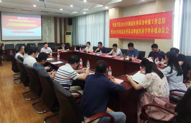 9月22日下午2点15分,成人直播 在北区综合楼815成人直播 2022年国家社科基金申报工作总结暨2023年国家社科基金理论经济学科申报动员会大会。科研处处长陈思华教授、国家级人才周应恒教授、《当代财经》杂志社社长王展祥教授、院长张利国教授、副院长裘莹副教授、各学院2022年申报国家社科基金理论经济学科以及2023年成人直播 拟申报国家课题的教师出席。会议由副院长裘莹主持。