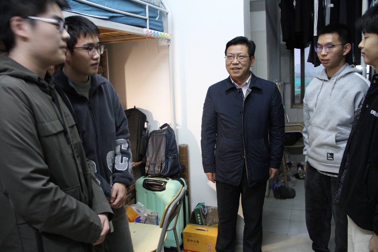 班会结束后,袁红林来到学生宿舍看望同学们。他认真查看了宿舍的情况,询问学生们的学习和生活状况,解答同学们的问题,和同学们一起畅谈人生和理想,他勉励同学们要珍惜美好的大学青春时光,努力提升自己,合理做好学业规划、职业规划、人生规划。他还提醒同学们要注意天气变化,保暖加衣,做好防疫防控,保持身心健康。