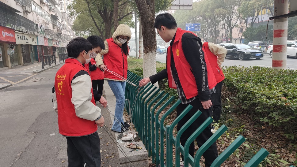 活动初期,在经院青协的积极号召下,经院学子纷纷响应,踊跃参与,共有15名志愿者参与其中。到达现场后,在活动负责人的安排下,志愿者们拿着由社区提供的劳动工具,积极清理绿化带内的白色垃圾,没有一丝松懈。