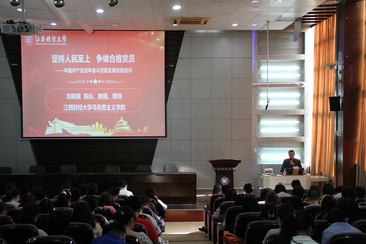 厚植人民情怀,争做合格党员。刘晓泉对此提出两点建议:第一要践行党的宗旨,牢记为民服务,将个人追求融入党和国家与人民需求;第二要勇于艰苦奋斗,练就过硬本领。并提倡同学们着眼于党和国家事业的新发展,坚持以知促行,做一个讲政治、有信念,讲规矩,有纪律,讲道德、有品行,讲奉献、有作为的合格党员。
