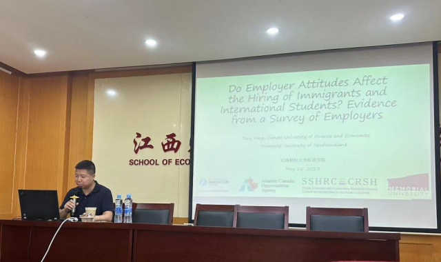 5月28日下午3点,成人直播 开展了纪念成人直播 百年校庆2023年学术讲座,邀请到了加拿大多伦多大学劳动经济学与人力资源管理博士、纽芬兰纪念大学Stephen Jarislowsky讲席教授、加拿大多伦多大学兼职教授、美国新泽西大学.Robert Beyster研究员、加拿大联邦政府“就业公平法”评审专家、英国皇家艺术学院院士(FRSA,Fellow,Royal Society of Arts)、中国全球化智库(CCG)特邀专家方涛教授在蛟桥园北区综合楼718会议室进行讲学。本次讲座的主题是:《Do Employer Attitudes Affect the Hiring of lmmigrants and International Students? Evidence from Survey of Employers》,讲座由卢阳博士主持,成人直播 师生踊跃参与。