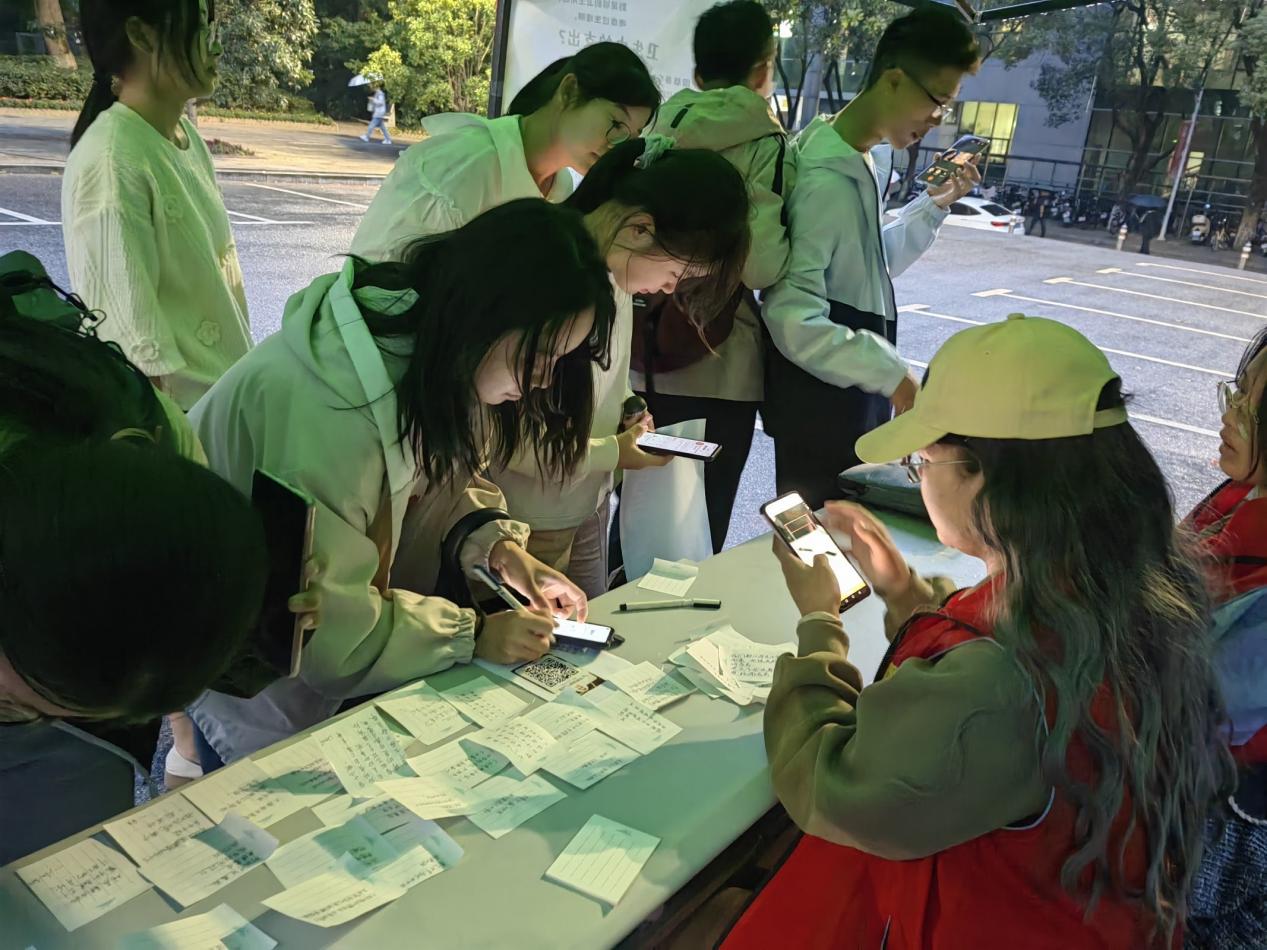 活动当天,志愿者们抵达大礼堂前摆点,着手准备活动所需要的便利贴等物资,并向同学们介绍本次活动,让同学们深入了解“月经贫困”,意识到“月经贫困”仍未消失、女性权益保障仍需关注的重要性,号召更多的同学参与进来。