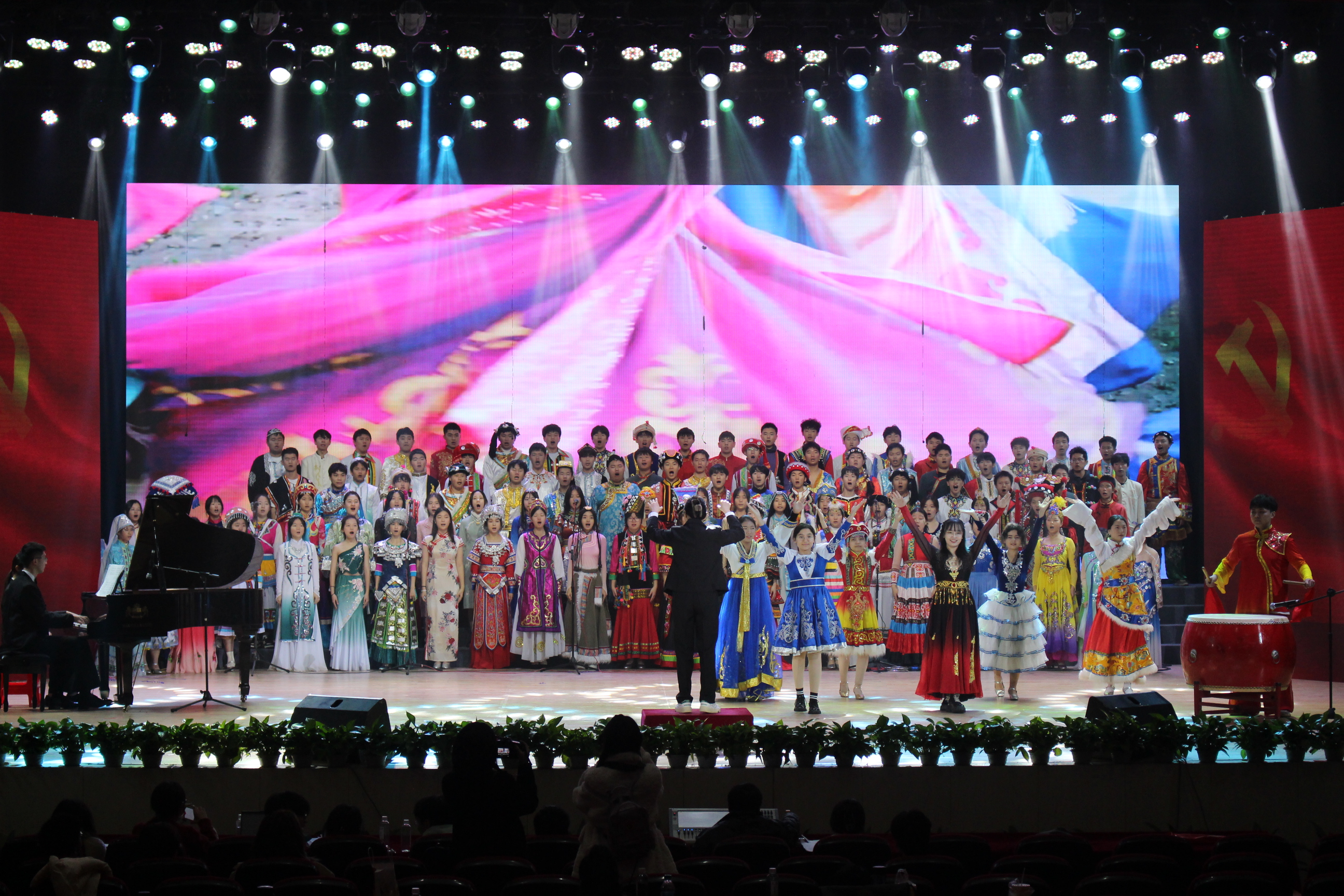 “五十六个星座五十六枝花,五十六个兄弟姐妹是一家,”成人直播 合唱队倾情合唱歌曲《爱我中华》,同学们的歌声像是一股澎湃的暖流,伴着悠扬的和声,我们看到一个民族大团结的繁荣景象,语言朴实,音调简洁,诉说这漫漫爱国情。高昂的热情和嘹亮的嗓音唱出了对中华民族团结的自豪,唱出了对党和国家的美好祝愿,讴歌民族大团结的美好生活,表现了中华儿女热爱祖国的深厚情感。舞台光与影的交织,别具一格的舞蹈与歌声相携,经院学子以饱满的热情、深情的歌声和优美的舞姿,给现场观众带来一场视听盛宴,赢得了全场的喝彩。