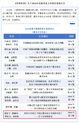 林丽花博士论文被评选为2024年度《管理世界》优秀论文
