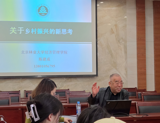 3月28日上午,北京林业大学经济管理学院陈建成教授应邀莅临成人直播 讲学,作题为“关于乡村振兴的新思考”的学术报告。讲座由生态经济研究院院长潘丹教授主持,院长张利国教授等院内外30余师生参加了报告会。