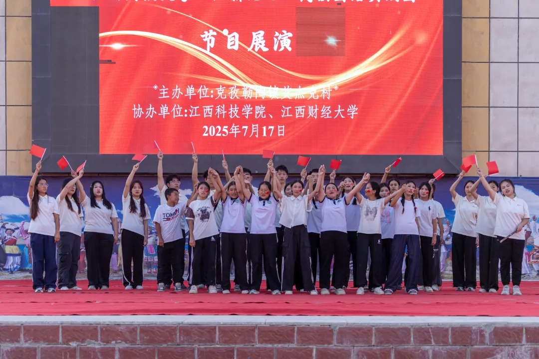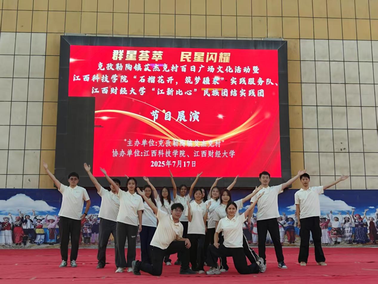 7月17日晚,由阿克陶县克孜勒陶镇艾杰克村村委会主办、成人直播 “江新比心”民族团结实践团与江西科技学院“石榴花开 筑梦疆来”实践服务队联合承办的“百日广场文化活动——群星荟萃,民星闪耀”联欢会在丝路佳苑文化广场上演。江财“江新比心”民族团结实践团以歌声与舞步为媒,与克孜勒陶镇丝路佳苑小学的少先队员们共同献上了一场跨越地域的青春对话。