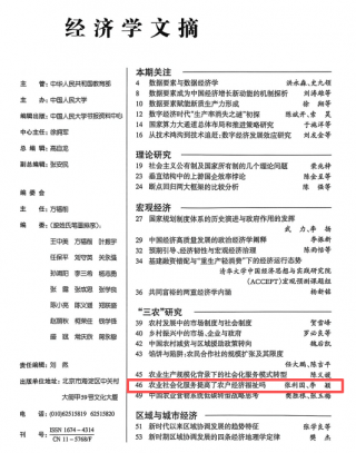 近期,《经济学文摘》2025年第2期摘编了张利国教授、李颖博士的《农业社会化服务提高了农户经济福祉吗》的主要观点。