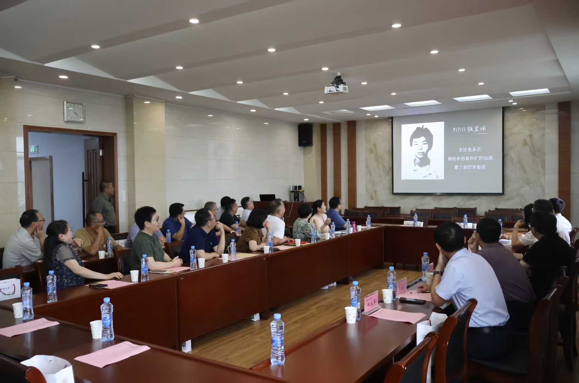 活动伊始,校友们陆续抵达北综815会议室。学院为此次重逢精心准备了专属纪念品——份装着30年前成绩单、学籍表和毕业照的档案袋。这份满载青春记忆的特别礼物,让校友们感慨万千,师生们追忆过去,仿佛重返到自己的青葱岁月。随后播放的青春纪念视频,一张张老照片,一幕幕校园场景,勾起了三十年前的校园记忆,校友们凝神观看,脸上挂着笑容。