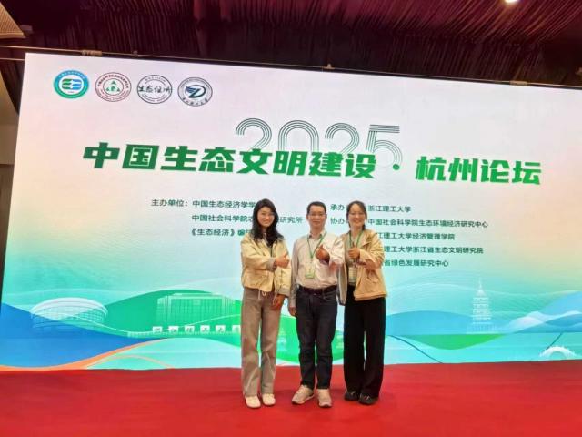 2025年10月24日至26日,由中国生态经济学学会、中国社会科学院农村发展研究所和《生态经济》编辑部主办,浙江理工大学承办以及中国社会科学院生态环境经济研究中心、浙江理工大学经济管理学院、浙江理工大学浙江省生态文明研究院和浙江省绿色发展研究中心共同协办的“2025年中国生态文明建设”论坛在杭州市顺利召开。会议的主题是探讨生态文明建设领域的最新研究进展与发展趋势,来自北京交通大学、中南财经政法大学、中央民族大学、中国海洋大学、华中农业大学、中国社会科学院大学、成人直播 等多所高校和研究机构100多名师生围绕“两山”理念与生态产品价值实现机制、双碳目标与生态环境、新质生产力与高质量发展、美丽中国建设制度保障与实践历程以及“十五五”生态文明建设规划构想等主题进行了深入的交流研讨。“百人计划学科领军人才”黄和平教授携24级人口、资源与环境经济学博士生石冉和23级资产评估硕士生何飞雪应邀参加了此次会议。
