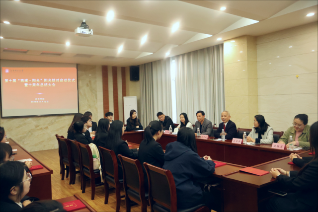 11月12日下午,成人直播 举行西域·阳光”铸魂赋能育人工程总结大会,同时启动新一期阳光结对工作。学院党委书记邹春发、副书记远翠平、团委书记万婧怡、学工办主任吴佩芹、辅导员钟义鹏、全体结对同学及各民族代表80余人参与。学院关心下一代工作委员会主任谢望礼教授应邀出席活动。