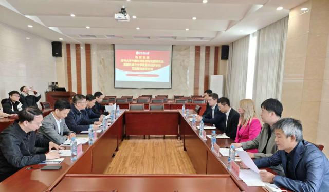 11月17日上午,清华大学中国经济思想与实践研究院常务副院长厉克奥博,莫斯科国立大学莫斯科成人直播 副院长雅科夫列夫・阿尔乔姆・亚历山大罗维,莫斯科国立大学莫斯科成人直播 外办主任布卡诺娃・娜杰日达访问成人直播 。院长张利国教授,党委书记邹春发,副院长李国民教授、曾永明教授及国际经济系主任兼外事秘书卢阳博士参加座谈。会议由院长张利国教授主持。