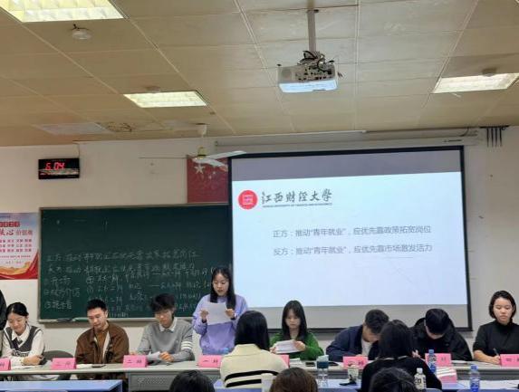时政评论大赛:思辨交锋中洞察时代脉搏。比赛采用“本硕博联动”的参赛模式,打破了学历层次的壁垒,实现了全方位的交流。“知识抢答”环节紧扣时代脉搏,围绕“新质生产力”“双碳”目标、乡村振兴等国家重大战略命题,考验了选手们对时政热点的知识储备与快速反应能力。“团队辩论”环节则深入现实肌理,就“县域经济升级路径”“青年就业破局策略”等具体而微的时代命题展开激烈交锋,辩手们引经据典、数据翔实、逻辑缜密,展现了江财学子心系天下、锐意进取的精神风貌。