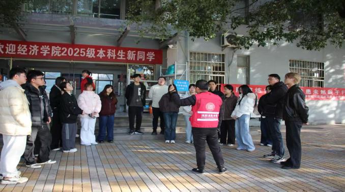 活动筹备阶段,保卫科工作人员与学生工作者召开简短会议,明确分工、细化流程。从疏散路线规划到岗位职责分配,井井有条;而后,工作人员向参与师生详细讲解火灾逃生技巧以及注意事项,强调“弯腰、捂鼻、靠右行”的核心逃生原则,为演练顺利开展筑牢基础。
