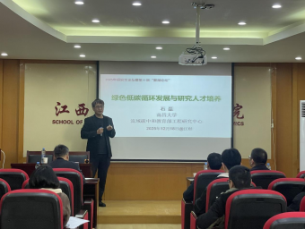 在专家主题报告环节,南昌大学资源与环境学院院长石磊教授以“绿色低碳循环发展与研究人才培养”为主题,石磊教授立足我国绿色低碳循环发展的战略背景与现实需求,从全球气候变化趋势、国内产业结构转型方向切入,系统阐述了绿色低碳循环发展模式的核心内涵与关键路径。他指出,绿色低碳循环发展是实现经济社会高质量发展的必然选择,而专业研究人才的供给则是这一进程的核心支撑。