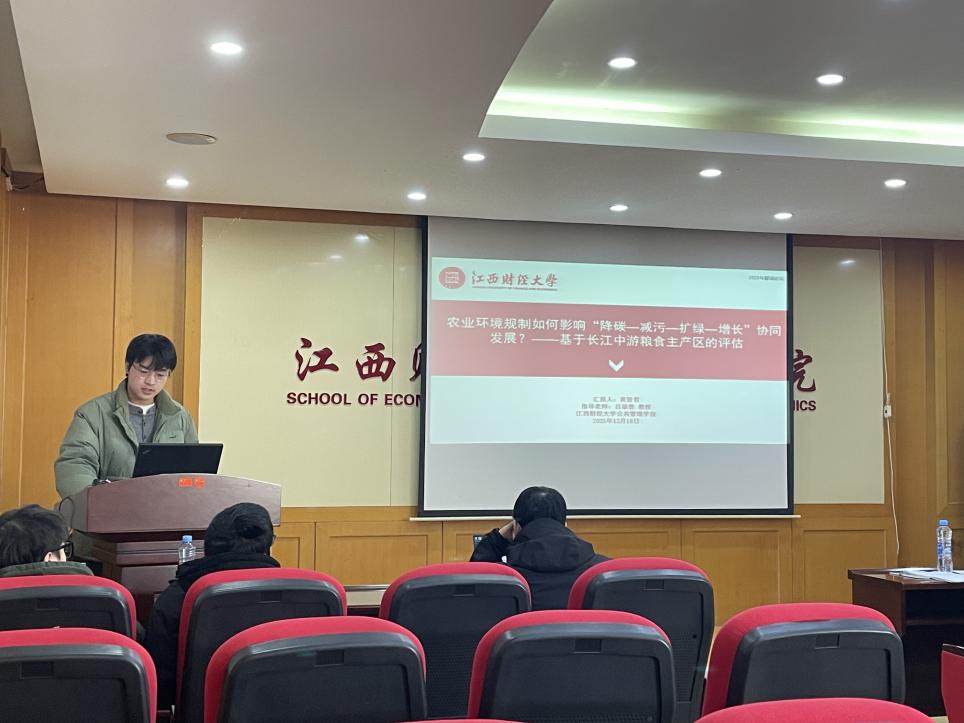 12月18日上午,成人直播 /生态经济研究院主办的2025年研究生论坛暨第十届“鄱湖论坛”在蛟桥校区北区综合楼718报告厅顺利召开。本次论坛以“数智赋能绿色发展”为主题,旨在提升研究生培养质量、活跃研究生学术氛围,锻炼学生科研能力,并加强学术交流。今年的论坛引起了校内外师生的广泛关注,来自南京大学、兰州大学、南昌大学、江西师范大学、江西农业大学等多所高校的博、硕士研究生积极投稿,共计36篇高质量论文参与汇报。