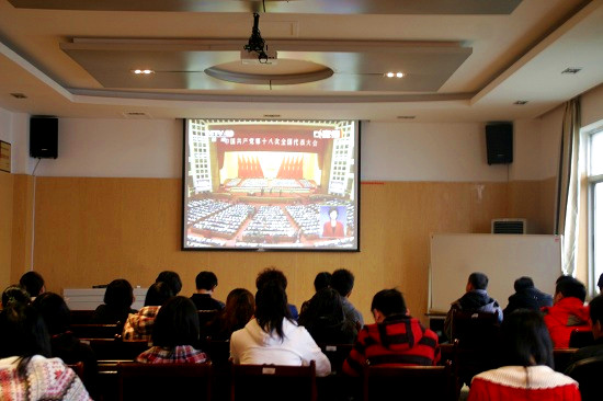 十八大会拉帷幕,党的事业谱新篇。11月8日上午9点,中国共产党第十八次全国代表大会在人民大会堂拉开盛大帷幕,成人直播 师生代表在综合楼八楼会议室举办了“举国同庆十八大,团结一致跟党走”集体观看十八大开幕式直播活动。党总支副书记吴太福、学生会分团委书记郭勇等老师一并观看了大会直播盛况。