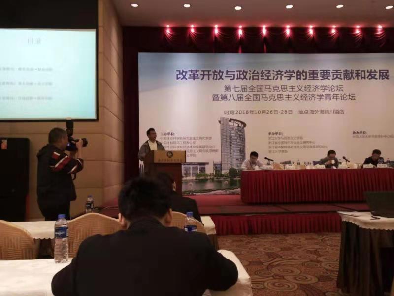 刘爱文老师应邀参加第七届全国马克思主义经济学论坛暨第八届全国马克思主义经济学青年论坛 时间:2018-11-08 08:26:57 作者: 阅读: 为纪念马克思诞辰200周年、《共产党宣言》发表170周年和中国改革开放40周年,进一步推动马克思主义政治经济学对现实问题的解释和应用,并结合时代变化与世界经济最新发展,丰富完善马克思主义政治经济学理论,由中国社会科学院马克思主义研究学部主办、浙江大学马克思主义学院承办、中国人民大学书报资料协办的“第七届全国马克思主义经济学论坛暨第八届全国马克思主义经济学青年论坛”于2018年10月26-28日顺利在浙江大学召开。出席此次会议的200多位专家学者分别来自中国社会科学院、浙江大学、清华大学、南京大学、中国人民大学、南开大学、四川大学、中山大学、武汉大学、西南财经大学、华中科技大学、中央财经大学、成人直播 、吉林财经大学、太原科技大学、辽宁经贸学院、浙江海洋大学、中共福建省委党校、中共杭州市委党校、福建师范大学、哈尔滨工业大学、辽宁大学、西南大学、中国人民银行等全国多所知名高校及科研机构。本次会议围绕“马克思主义政治经济学基本原理及其当代价值研究”“习近平新时代中国特色社会主义思想研究”“技术变革与社会发展的政治经济学研究”和“青年马克思主义学者(硕博)研究论坛”等主题展开了热烈的讨论。应会议主办方邀请,成人直播 成人直播 刘爱文老师作为中青年代表在10月28日的闭幕式上作了“新时代我国科技创新三重路向及其历史内涵诠释”的主题报告,引起了与会代表的热烈讨论,会议期间,刘爱文老师还同全国各大高校从事政经教育事业的青年同行们进行了广泛而深入的交流。 上一篇:东北农业大学经济管理学院张永强一行来成人直播 调研交流 下一篇:成人直播 学子在首届全国高校经济学综合博弈实验大赛取得佳绩
