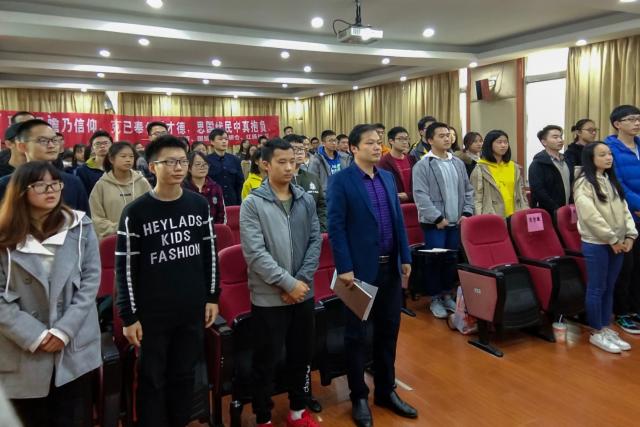 12月1日,成人直播 、金融学院和国贸学院于翼轸楼联合举办马克思兴趣小组开班仪式。成人直播 罗斌程代表马克思兴趣小组成员进行发言,全体马克思兴趣小组成员及大研会成员积极参与。