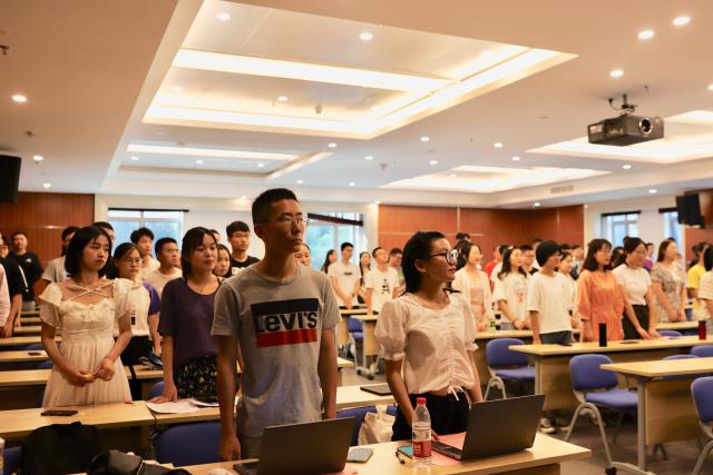 学院领导离席后,成人直播 研分会的主席余瑶和副主席崔杨分别给19级新生介绍了学院研分会的工作以及研究生期间的竞赛活动,让新生们进一步了解了学院学生的学习生活情况。