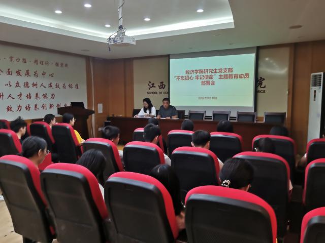 9月19日晚上,成人直播 研究生党支部在北区综合楼7楼会议室召开了“不忘初心、牢记使命”主题教育部署动员大会。会议由支部书记郭勇同志主持,研究生全体党员同志以及入党积极分子参加了会议。