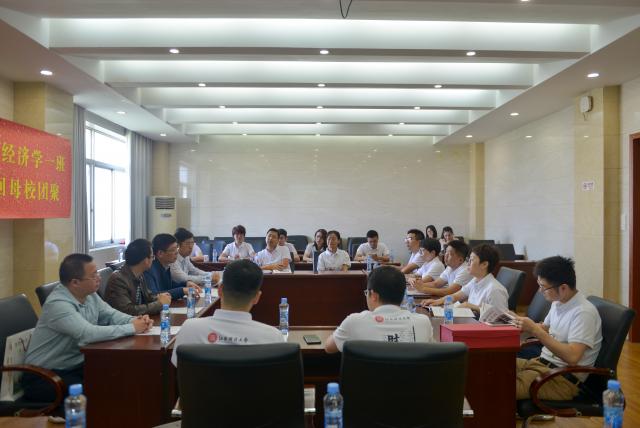 座谈会开始,张利国院长发言。他首先从学科体系、未来的学科目标以及科研成就等方面介绍学院的基本情况,期间说道:“悠悠赣江水,绵绵同学情,南昌就是同学们的家,欢迎大家常回家看看。”接着各位校友自我介绍,许多人提到毕业后仍在密切关注母校,十分怀念林荫树下畅想未来的学生时代。还特别提到江财学子普遍受到外界认可,为身为一名江财人感到骄傲。最后班长代表班级向张利国院长送出了纪念礼品,并合影留念。