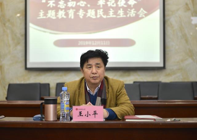 12月11日下午,经济学院召开了“不忘初心、牢记使命”主题教育专题民主生活会。本次民主生活会以“不忘初心、牢记使命,以正视问题的自觉和刀刃向内的勇气,解决违背初心和使命的各种问题,把主题教育成果转化为推动学校高质量发展的动力”为主题。党委常委、副校长王小平亲临指导,学院党委班子成员参加会议,会议由院党委书记邹春发主持。