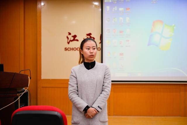 而后,万婧怡老师推荐了16级国民经济管理专业的王爱爱同学分享参加创新创业比赛的经历。王爱爱同学分享了在上一届三创赛中获得省级二等奖的作品《筑梦生态教育体验农庄》,她认为策划书的执行摘要、与现在市场上存在商品相比的优势分析和最终评价三部分的内容应该有所侧重的写。她还谈到,做比赛时应尽量关注国家宏观层面进行选题,同时抓热点词,注重创新。